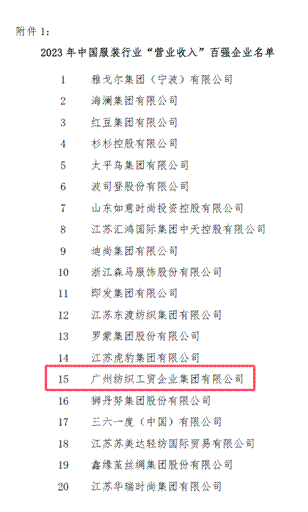 7月22日,《2023年中国服装行业百强企业》榜单发布,九游·体育(jiuyou.com)官方网站连续三年登榜,位列2023年中国服装行业“营业收入”百强企业第15名!
